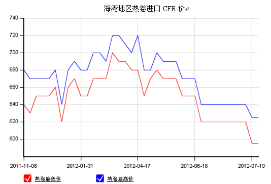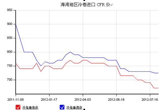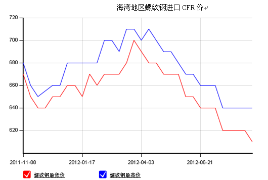 一般情況下,中東北非買家會在齋月開始前一個月左右開始補充庫存,往年會迎來小波價格上漲的趨勢。今年受歐洲債務危機影響,全球經濟形勢不好,鋼材需求低迷,鋼價整體水平低于往年。在今年6月中下旬海灣地區鋼材價格止跌維穩,但時間非常短暫,鋼價在6月末又開始下跌。
