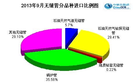 2013年9份進口無縫管2.14萬噸,比去年同期多進口0.5萬噸,同比增長30.49%。9月份進口環比上月減少0.15萬噸,環比下降6.55%。2013年1-9月份累計進口無縫管16.89萬噸,同比增長0.98%。(參見:圖三、圖四)