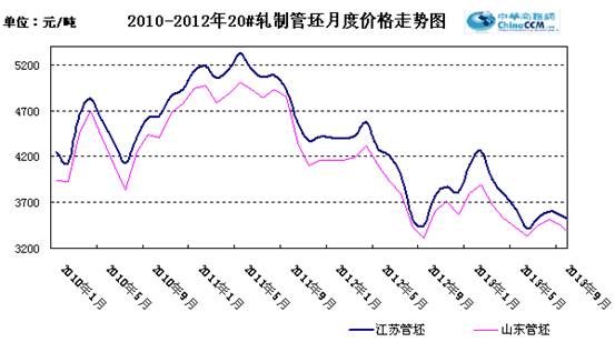 10月江蘇20#軋制管坯月均報價3494元/噸,和上月月均報價相比下調63元/噸左右,山東20#軋制管坯報價3319元/噸,比上月月均報價下調130元/噸。中上旬上游原材料管坯價格弱穩觀望,下旬管坯價格小幅下調。作為冶金原料之一的鐵礦石價格小幅下挫,現京唐港進口的63.5%品味的印度粉礦920-930元/噸,原料價格的下行對鋼材市場信心產生嚴重的影響,鋼材市場價格普遍下行。從其下游來看,無縫管市場價格小幅下調,市場成交不振,短期內無縫管價格持續穩中趨弱的態勢。終端需求持續不振,再加上原料價格支撐力度不足,短期內管坯價格持續穩中小幅波動下行的趨勢。