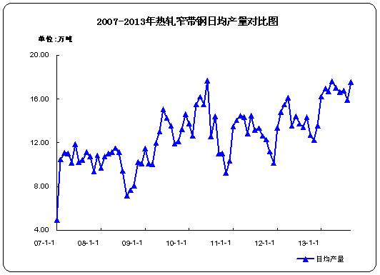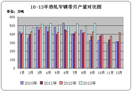 據(jù)中華商務(wù)網(wǎng)監(jiān)測(cè)數(shù)據(jù)顯示,2013年9月份國(guó)內(nèi)熱軋窄帶鋼產(chǎn)量525.1萬(wàn)噸,環(huán)比增加30.9萬(wàn)噸,環(huán)比增長(zhǎng)6.25%;日均產(chǎn)量17.5萬(wàn)噸,日均環(huán)比增長(zhǎng)9.79%;比去年同期產(chǎn)量428.6萬(wàn)噸增產(chǎn)96.5萬(wàn)噸,同比增長(zhǎng)22.52%。2013年9月份國(guó)內(nèi)冷軋窄帶鋼產(chǎn)量94.1萬(wàn)噸,環(huán)比增產(chǎn)3.8萬(wàn)噸。