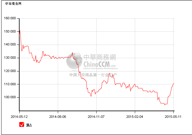 金川公司鎳價調(diào)整情況:年初108000元/噸,110500元/噸,4月下旬出現(xiàn)至今低點(diǎn)在94300元/噸 。從走勢圖來看,目前價格跟年初水平相差不多。